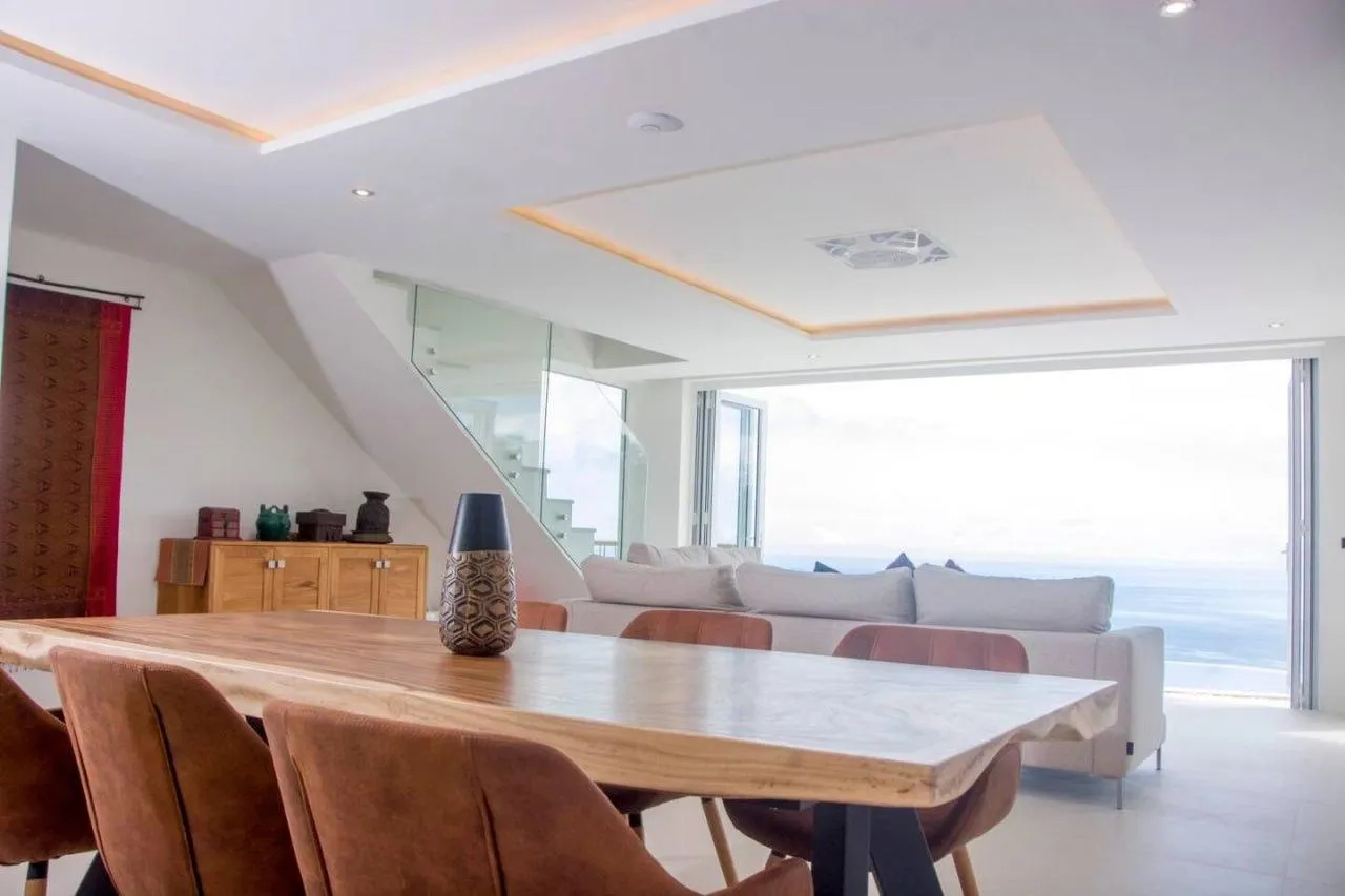 Большая вилла с панорамным видом на море. Частный бассейн также с видом на море. Панорамные окна, в жилье много света.